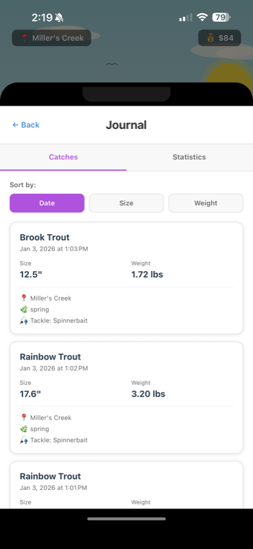Track your catches in the Journal app: